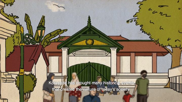 Living Museum – The History of Kota Gede (2020) is an animated video created as part of the Kota Gede Museum initiative in Yogyakarta. Commissioned by Dinas Kebudayaan Kota Yogyakarta and produced by Bunga Trotoar Production in collaboration with Neighbourhood Id, this piece brings the rich history of Kota Gede—from its past to the present—to life as part of a museum’s multimedia exhibition content